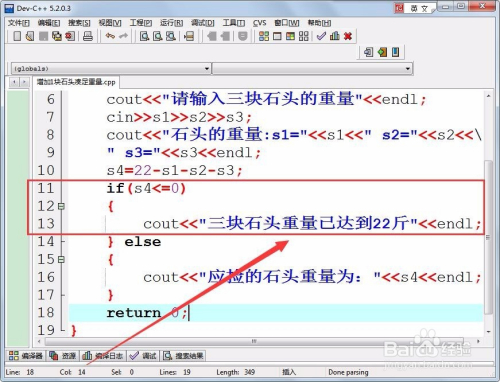 用if语句判定,若是s4的值小于等于0,申明前三块石头重量已达到22斤,不需捡第4块石头了。