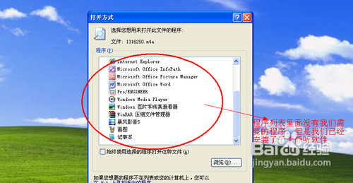 然后我们会发现,我们打开的法式列内外面没有千千静听这个软件,那么需要我们定位到这个软件,然后固定这个法式打开固定格局的音乐文件。