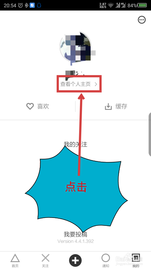 在开眼我的界面,点击昵称下面的查看小我本家儿页。操作如截图所示