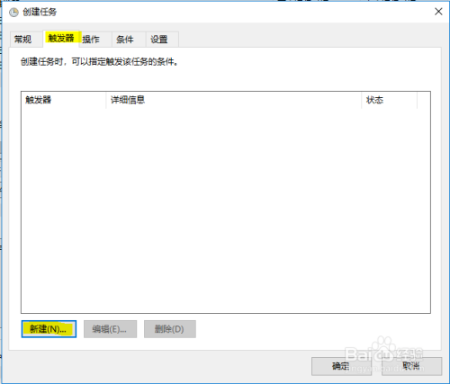 设置触发器:选择“触发器”选项卡,点击“新建”,设置好执行时候,然后点击“确定”。