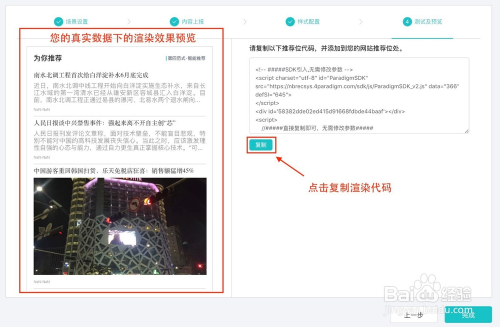 若是未弹窗提醒框,就申明保举代码接入当作功了,这时辰就可以点击“下一步”起头样式设置装备摆设了