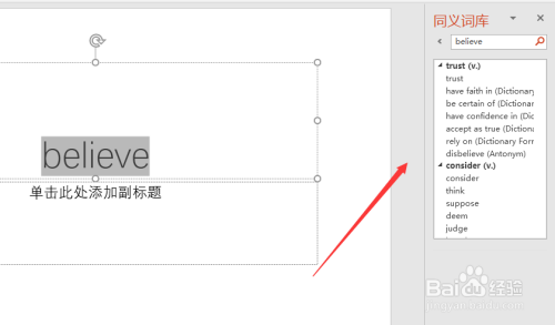 同义词库。简而言之就是查找近义词,可是PPT在这个功能上对于中文的撑持性不强,本家儿如果英文单词轻易查找到近义词。