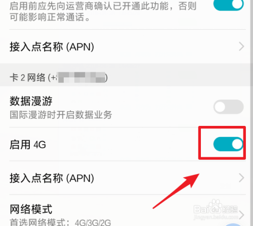 若是我们装的是两张卡,将别的一张的“启用4G”的选项同样封闭,则手机就处于3G状况。