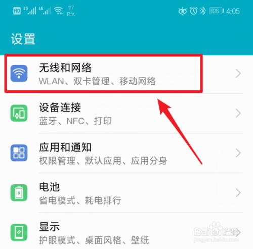 在设置中,我们选择页面中的“无线和收集”的选项进入。