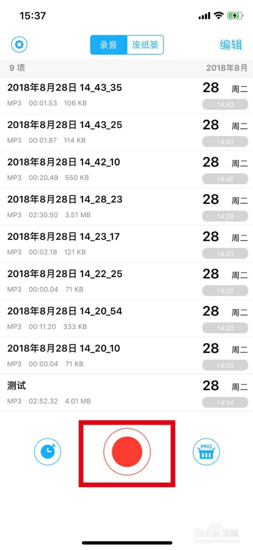 启动即灌音:首先打开这条目软件,如图。中心是一个红点按钮。点击后即可起头灌音。