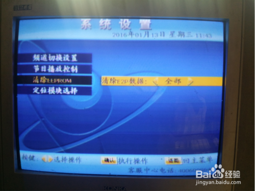 经由过程遥控器上下键选择第三行“断根EEPROM信息”后再经由过程遥控器摆布键选择“全数”。