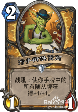 污手街供货商-侍从(1 / 1)战吼:使你手牌中的所有侍从牌获得+1/+1
