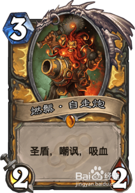 燃鬃·自走炮-侍从(2 / 2)圣盾,嘲讽 该侍从造当作的危险还会为你的英雄恢复等量的生命。