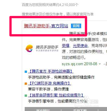 在百度页面搜刮“腾讯手游助手”,找到官网点击