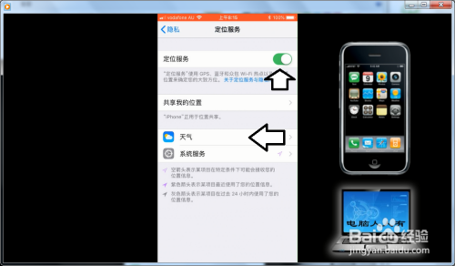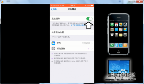 再打开定位办事(打开为绿色)。