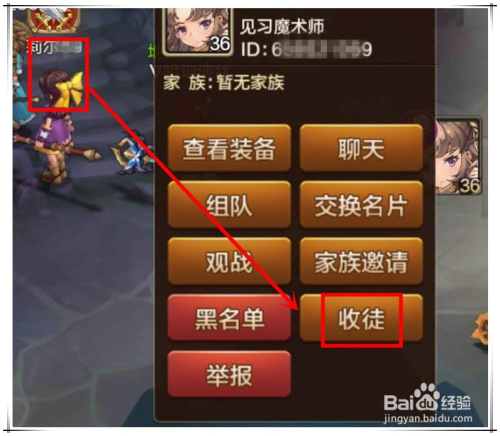 经由过程搜刮ID号来招收门徒的方式并不常用,因为年夜多时辰我们并不知道对方的ID号,并且即使知道,也可贵去输这么一年夜长串的数字。招收门徒常用的方式如下:接近对方,点击对方的头像,这时会弹出一个菜单,若是对方品级小于40级,则会在菜单中呈现“收徒”选项。