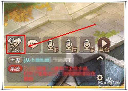 1.登录游戏脚色后,在游戏本家儿界面,点击右侧聊天框上的"社交"按钮。