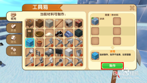 在常用里面,将4个冰块合当作1个冰砖。是以想要盖冰雪屋,需要收集很是多的冰块。