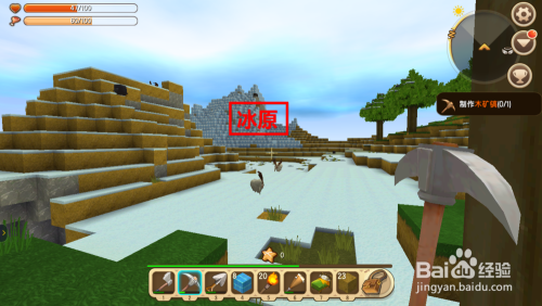 用镐子收集冰原上的冰块,注重准心瞄准冰块,而不是冰块上笼盖的雪。