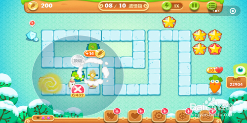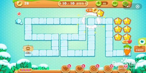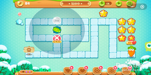 游戏起头后可以发现地图上自带一个瓶子炮,用这个瓶子炮对四周内的道具断根失落,获得足够的萝卜今后在图示位置建造首个炸弹星。