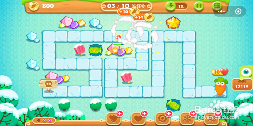 道具清理完后,再将建造的第3个瓶子炮打消失落,用打消瓶子炮后获得的萝卜来建造更多的炸弹星。