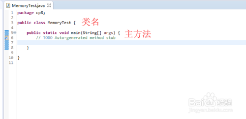 点击“Finish”按钮后,可以看到我们已经建立了一个空白的内存办理测试类,只包含了包名和类名,还包含了主动生当作的本家儿方式,具体的实现过程还要我们添加具体内容