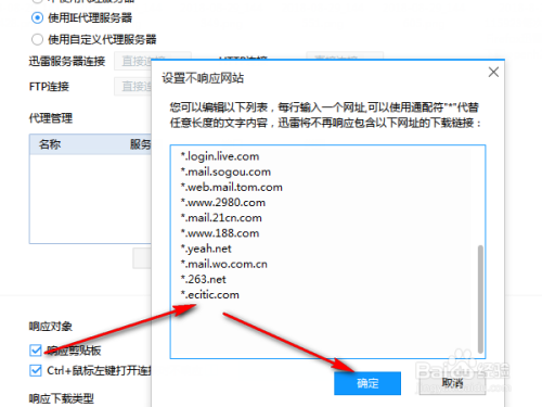 在响应设置里设置不响应的网站。