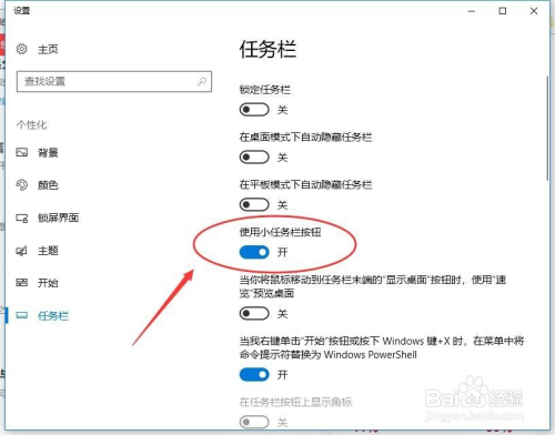 新弹出的使命栏设置窗口中,我们打开利用小使命栏按钮即可,开启的刹时我们将变为了小图标。
