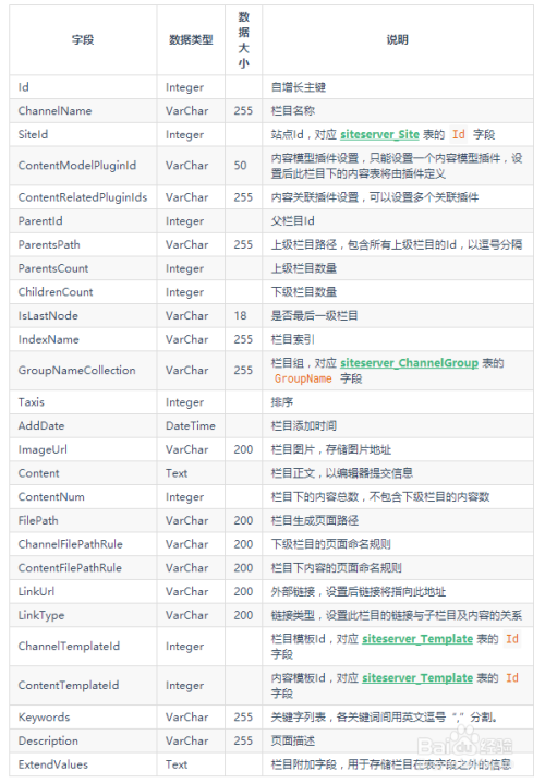 栏目表,存储站点下的栏目信息。