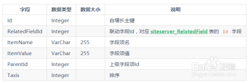 内容表字段信息表,存储与站点联系关系的内容表的具体字段信息。