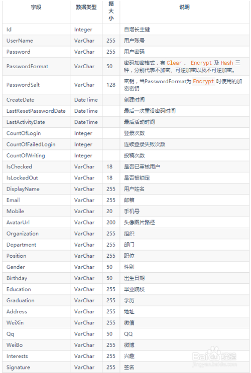 用户表,存储用户信息。
