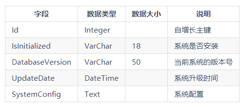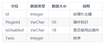 插件表,存储插件信息。