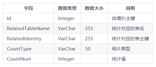 数字统计表,存储统计信息。
