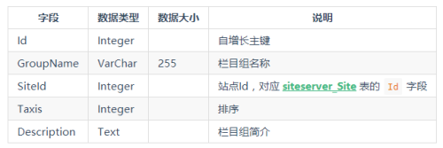 栏目组表,存储栏目组信息。