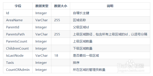 区域表,存储所属区域。