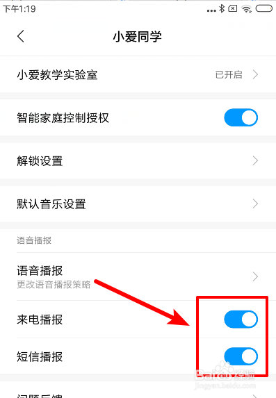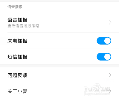 选择完毕后,我们返回页面,找到来电播报和短信播报的选项。