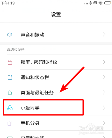 在设置选项中,我们下滑页面,找到页面中的小爱同窗点击进入。
