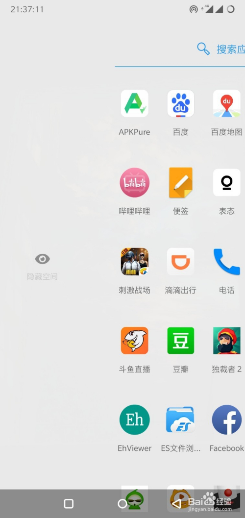在桌面往上滑打开应用抽屉,然后从应用抽屉最左边往右拉就可以打开应用抽屉了.不外埋没空间并不撑持设置密码哦~