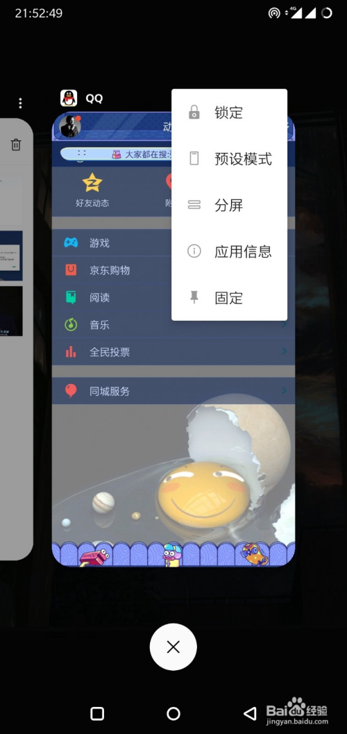 接下来说另一个超等壮大的功能!屏幕固定,首先点击“多使命”按钮,选摘要锁定的应用,点击右上角有屏幕固定的选项,如许就只能锁定在这个应用操作了,如许就再也不怕借手机给小孩,他乱开应用啦~