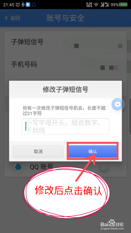 在弹出的点窜页面,输入新的枪弹号,点击确认。如图所示