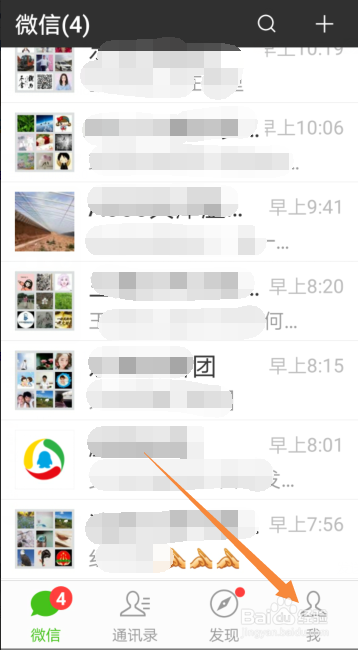点击微信界面的右下角的我,为的是进入微信钱包。