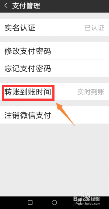在付出办理里面有一项是付出到账时候设置,点击这个设置。