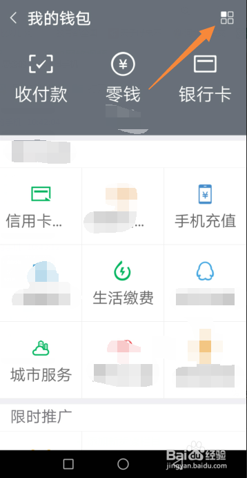 在我的钱包右上角有一个四个小方框的图标,点击这个图标。