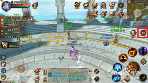 打开万王之王手游并登录游戏账号,在游戏中点击小地图下方的按钮,如图所示。