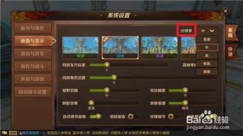 在画面中有分辩率的设置,分辩率对画质的影响是比力年夜的,一共分钟为五中,小编建议卡顿的伴侣设置为中等就可以了,设置好后返回游戏看是否仍卡顿。