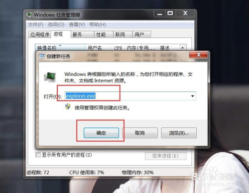 在接下来弹出的选项中,我们输入“explorer.exe”号令,即可从头启动Windows资本办理器法式。