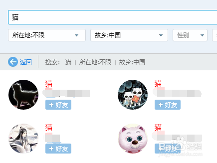 下方会呈现良多昵称是“猫”的用户,点击“+老友”