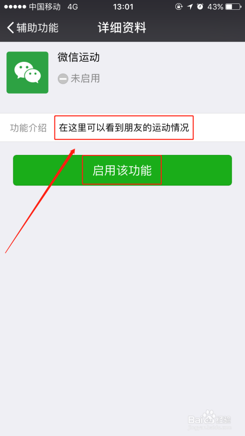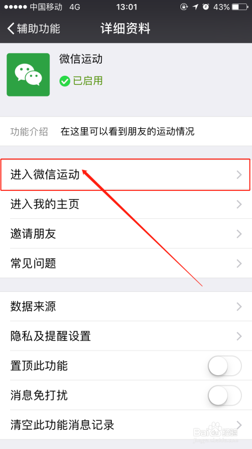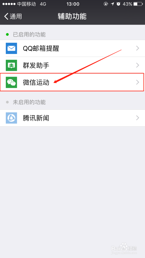 在【辅助功能】选项里,我们点击【微信活动】选项并启用该功能,如许我们手机就可以记实天天的步数而且和微信伴侣进行评选了,天天健康糊口十分主要哦