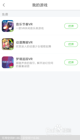 在这里我们就可以知道我们今朝下载了哪些VR游戏。点击【打开】就可以直接运行该app进行游戏哦~