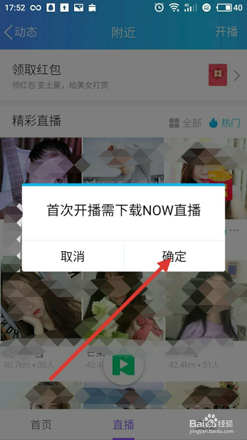 若是你想本身开播的话,就必然要先下载NOW直播才可以开播哦,点击“确定”进行下载。