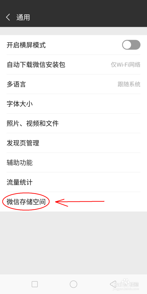 在通用页面找到“微信存储空间”并点击它。(如下图)