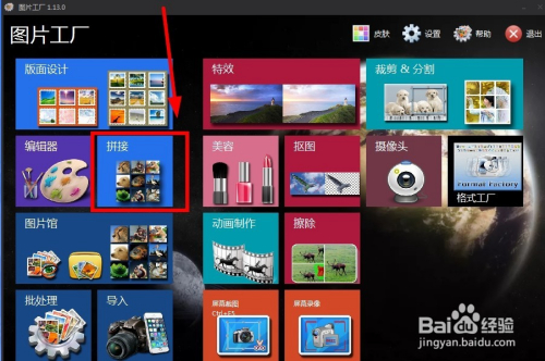 首先打开“图片工场”,进入图片工场后,点击“拼接”选项