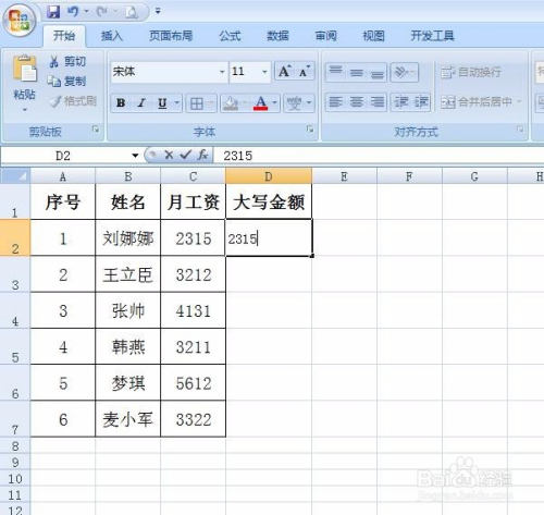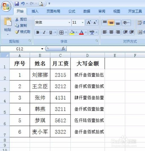 第一步:打开一个需要把数字转化为年夜写金额的excel表。