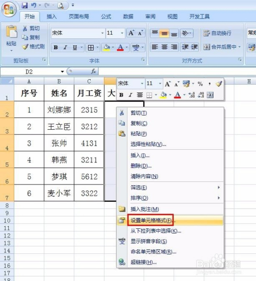 第三步:选中要显示年夜写金额的一列,单击鼠标右键,选择“设置单位格格局”。