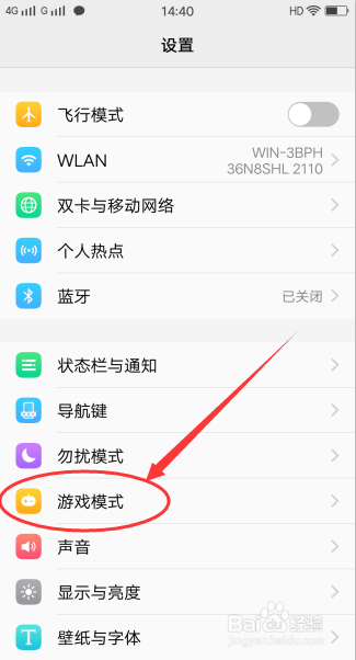 接着进入到设置页面,找到傍边的游戏模式选项卡,如下图所示。